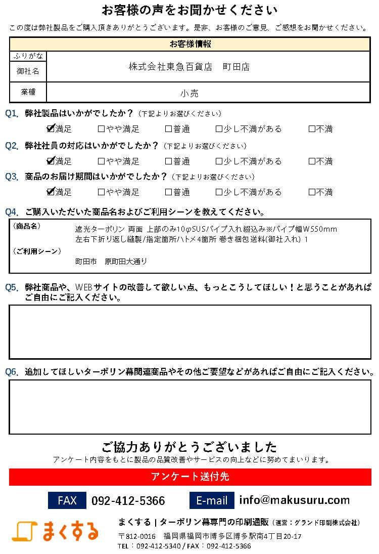 (株)東急百貨店町田店様よりご注文をいただきました。