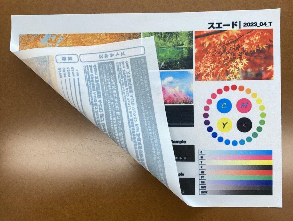スエードは布生地の一種で、光沢を抑えたマットな質感が特徴です。印刷面の再現性が高く、写真やイラストを美しく表現したいブース装飾に最適。柔らかい素材ながらも発色が非常に良く、スポットライトや照明の下でも色がくすまず、上品な雰囲気を演出します。