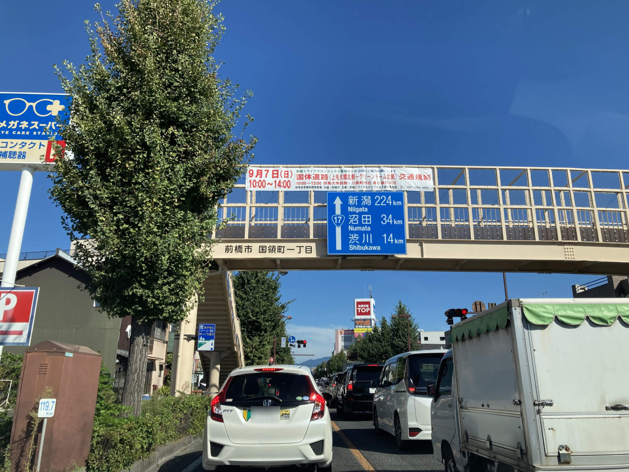 こちらは、合同会社Delightful様よりご依頼いただいた、交通規制告知用の歩道橋掲示幕の製作事例です。車両からの視認性を重視し、遠くからでもはっきりと読める赤文字デザインで仕上げました。