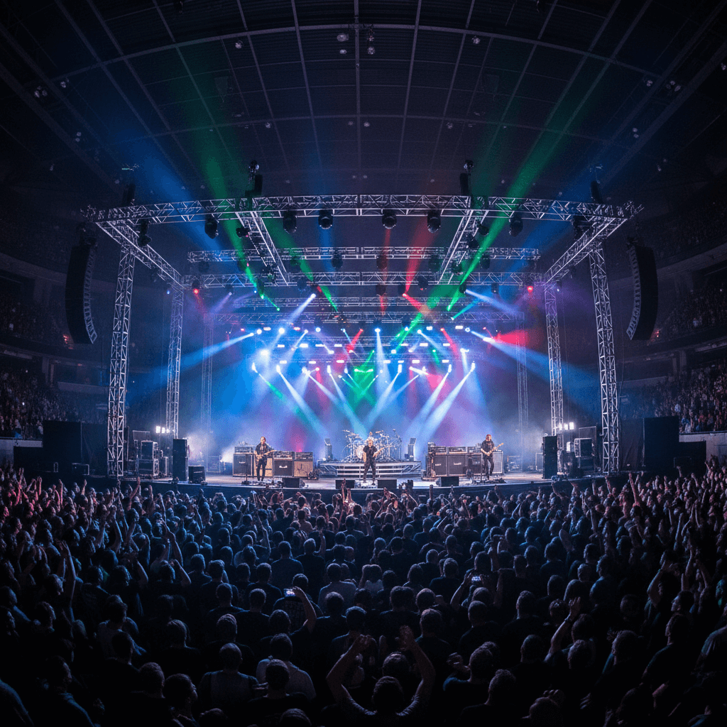 トラスは強度と拡張性に優れ、展示会・イベント・ステージなど幅広い場面で利用される構造体です。装飾や機材を支えるだけでなく、空間そのものを形づくる役割も担い、立体的で印象的な演出に欠かせない存在です。代表的な用途は次のとおりです。