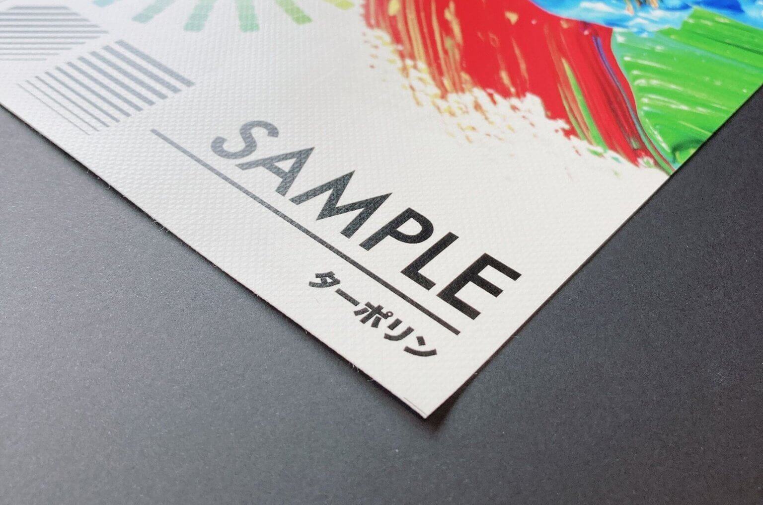 ターポリンとは、ポリエステルの布地に塩化ビニール(PVC)をコーティングしたシート素材のことです。防水性・強度・発色性に優れているため、屋外でも長期間使用できるのが最大の特徴です。雨風や日光にも強く、屋外広告・横断幕・養生シートなど、幅広いシーンで活躍しています。